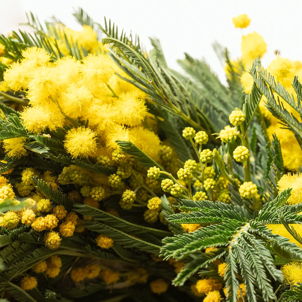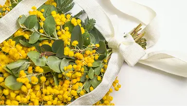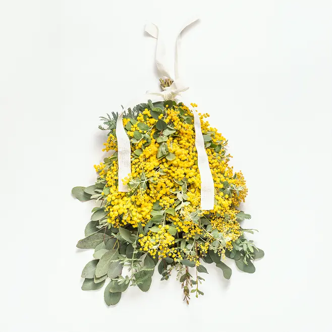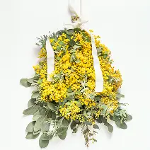ミモザの枝を束ねて作る長さ40cm程度のスワッグを作ります。