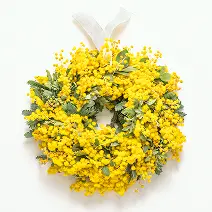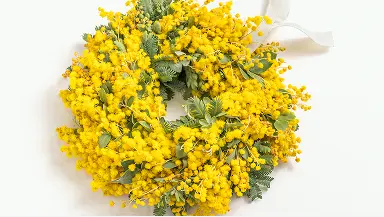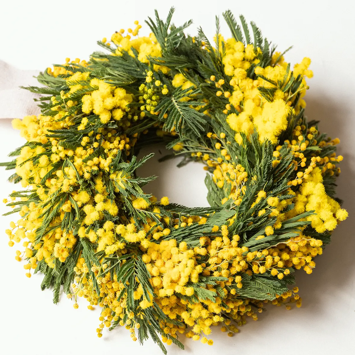 ミモザの枝をふんだんに使ったモコモコのリースを作ります。(約直径25cm)