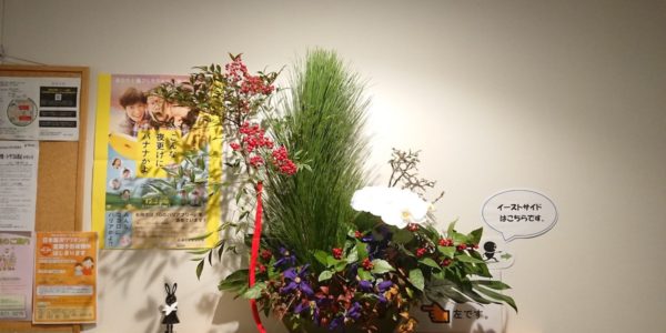正月 商業施設玄関への生け込み