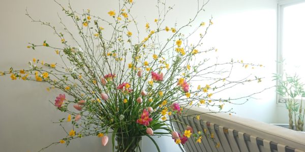 春分 クリニック玄関の生け込み